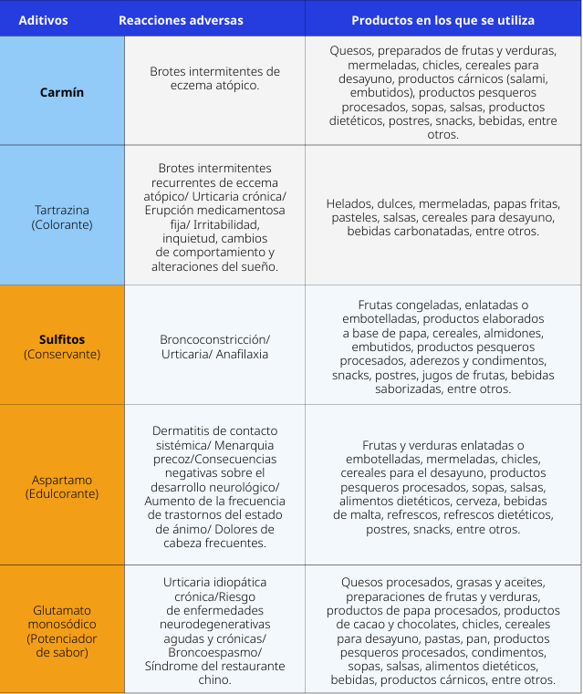 Reacciones adversas de aditivos alimentarios en población infantil